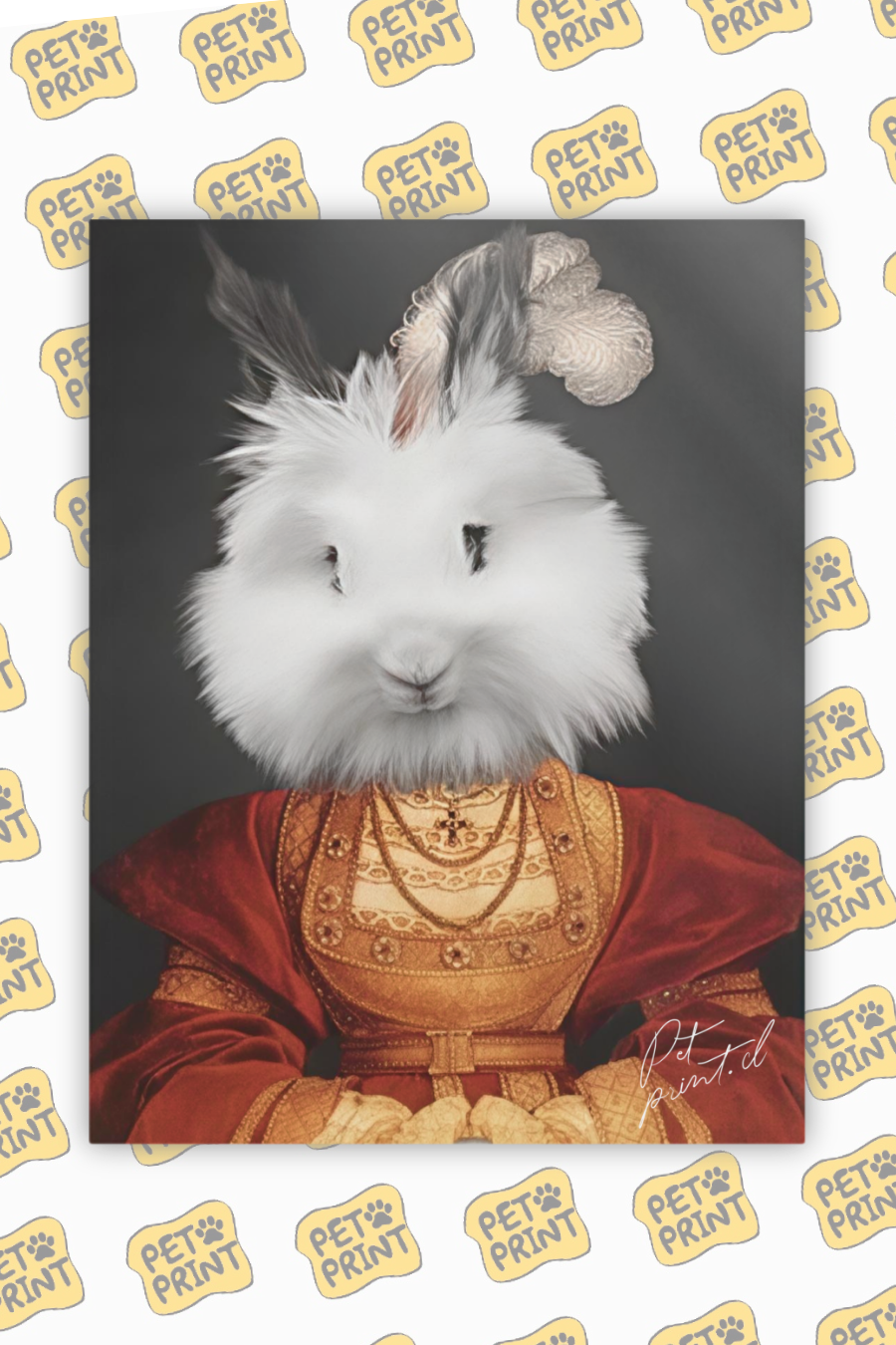 Sumérgete en la majestuosidad de la historia y la profunda conexión con tu mascota a través de nuestra obra destacada de la colección "Arte e Historia de PetPrint", titulada "La Reina Roja". Este cuadro no solo es una expresión artística, sino un tributo al esplendor y la influencia que tu querido compañero peludo aporta a tu vida.