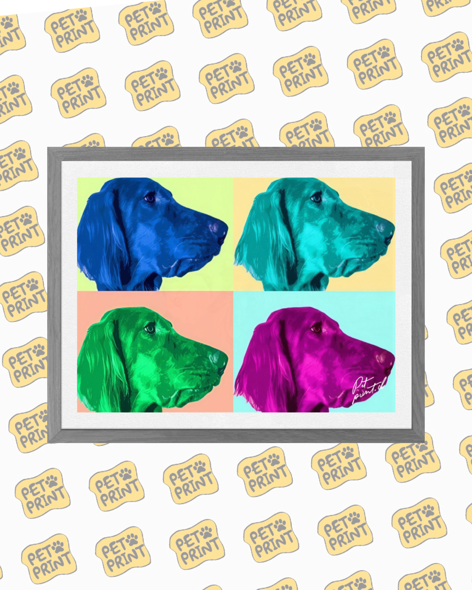 Sumérgete en el vibrante mundo del pop art con nuestro "Retrato Cuadrado Horizontal" de la línea Pop Art de PetPrint. Este cautivador cuadro rinde homenaje al icónico estilo de Andy Warhol, capturando la esencia del movimiento artístico con colores brillantes y composición única.